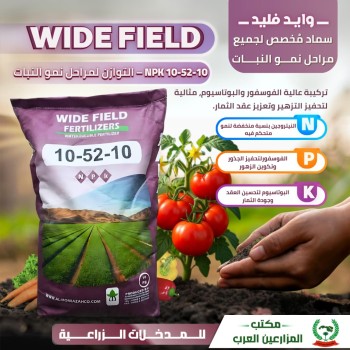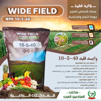 سماد وايد فيلد NPK 10-5-40 هو سماد مركب يحتوي على نسبة متوازنة من النيتروجين والفوسفور والبوتاسيوم